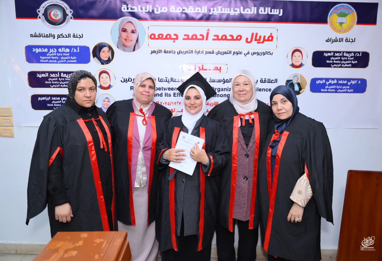 Holding the discussion committee of Master thesis in Nursing- Nursing Administration Department submitted by the researcher Aya Farag El-Sayed Ahmed El-Qenawy