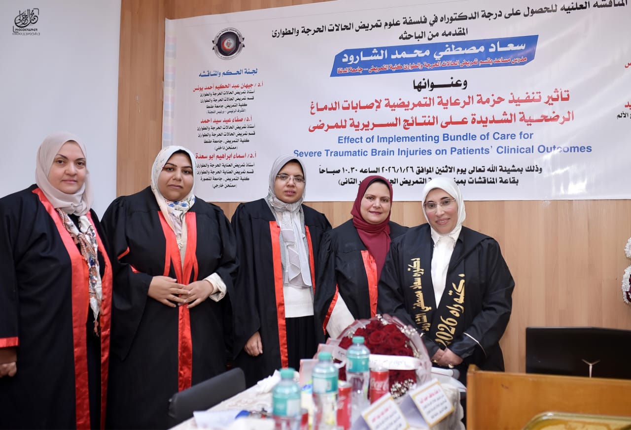 Soutenance publique de la thèse de doctorat de la chercheuse/ Souad Mostafa Mohamed El-Sharoud, assistante au département de soins infirmiers des cas critiques et d’urgence