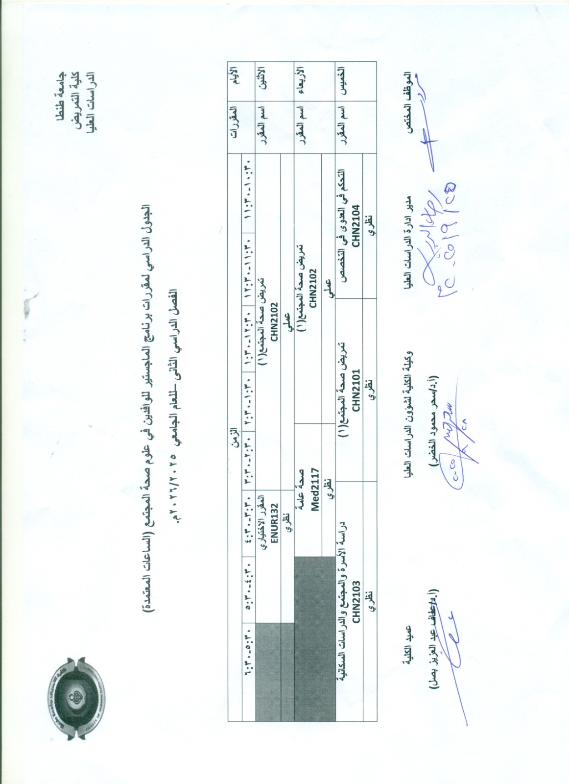 الجداول الدراسية -الدراسات العليا